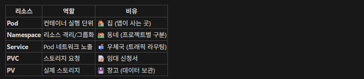 | ✔ PV (Persistent Volume) : 실제 스토리지 지원(물리적 저장소) ✔ PVC (Persistent Volume Claim) : 파드가 "나 이만큼 저장소 필요해!" 라고 요청하는 것, PVC가 PV를 바인딩 하여 사용 가능해짐 |